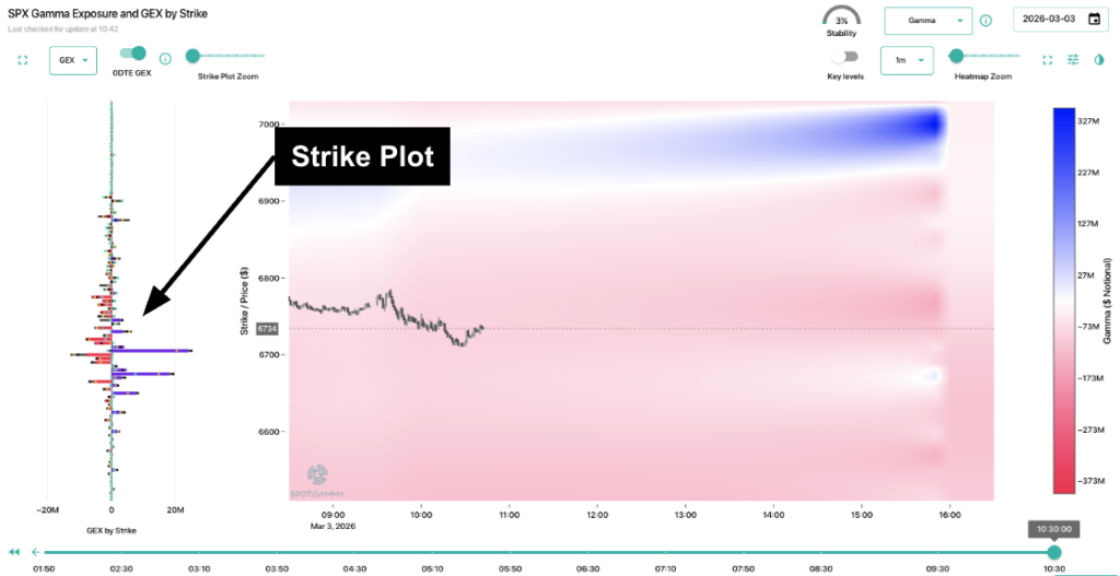 Isolate same-day expiry positions on the Strike Plot to see exactly which strikes are driving intraday gamma pressure right now.