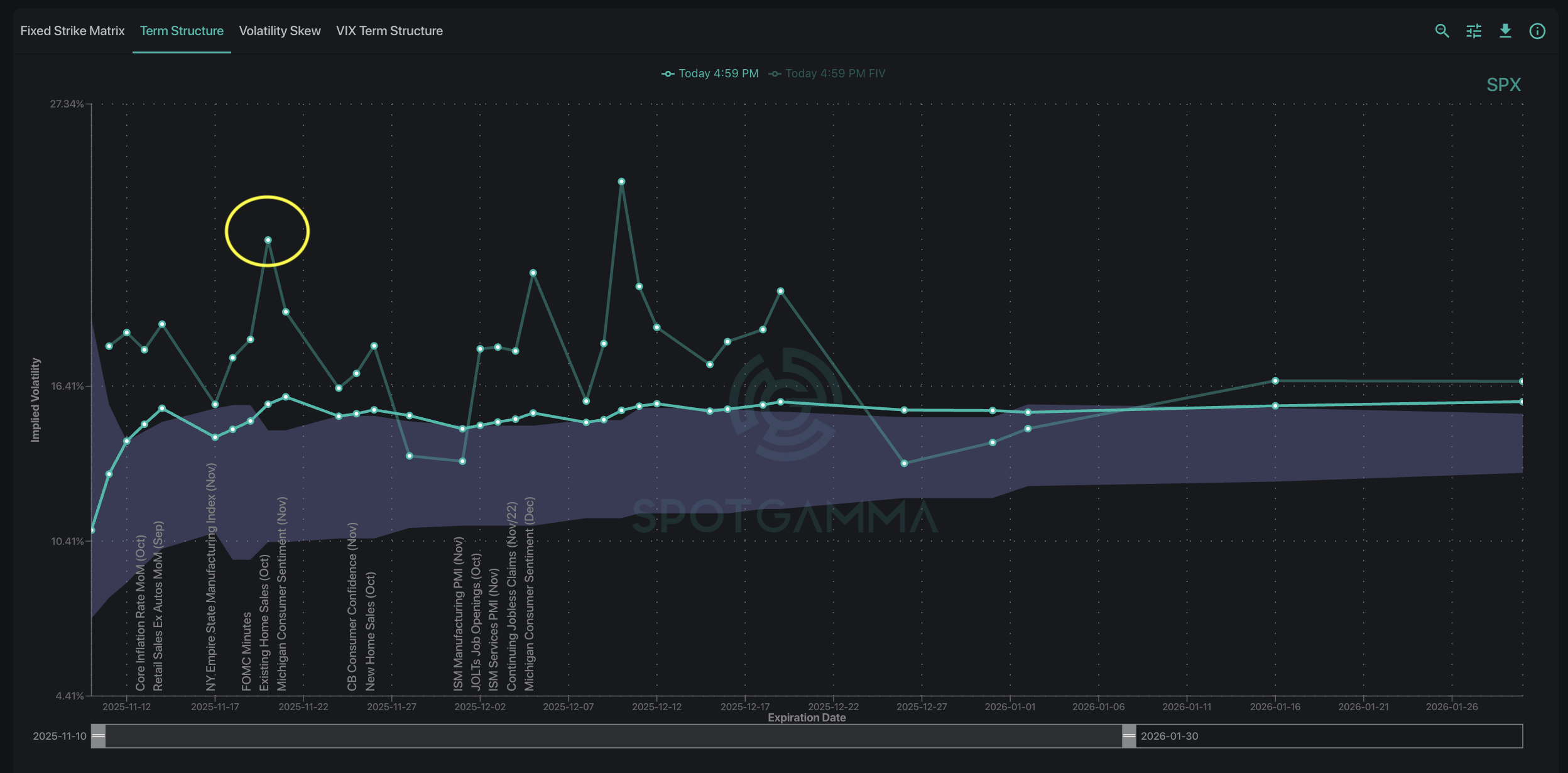 Looking out over the next two weeks, our Forward IV-adjusted Term Structure reveals NVDA 11/19 earnings as the most significant event on the calendar. This gives way to 11/21 OPEX, making the week of 11/17 a major turning point for risk.