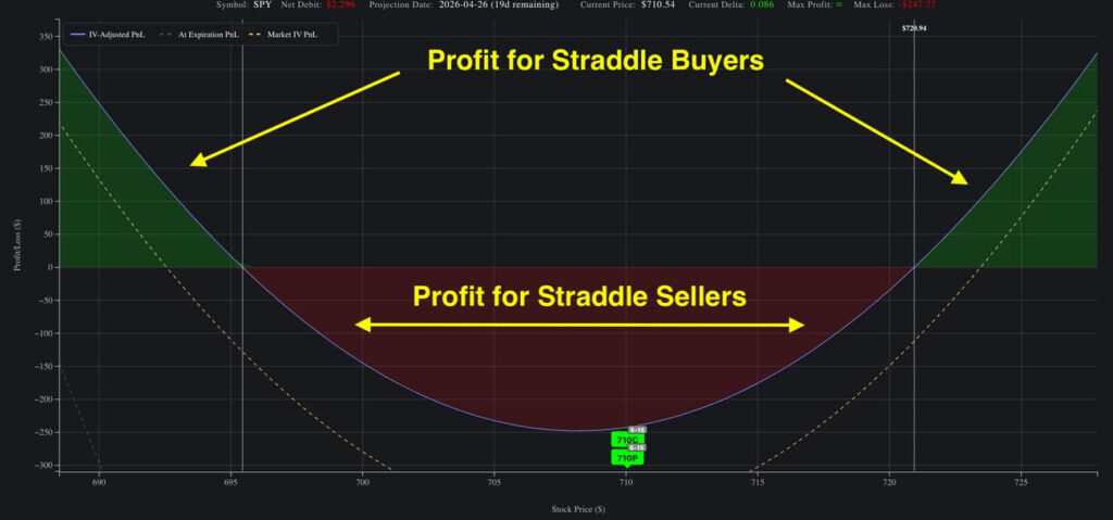 As we discussed in last Monday’s webinar with Jeff Tompkins, the current environment generally points to long volatility structures over short premium strategies. In particular, straddles or strangles may provide favorable risk-rewards setups. In order to visualize potential PnL before entering a trade, SpotGamma’s Options Calculator offers pre-set strategy templates to help get started.